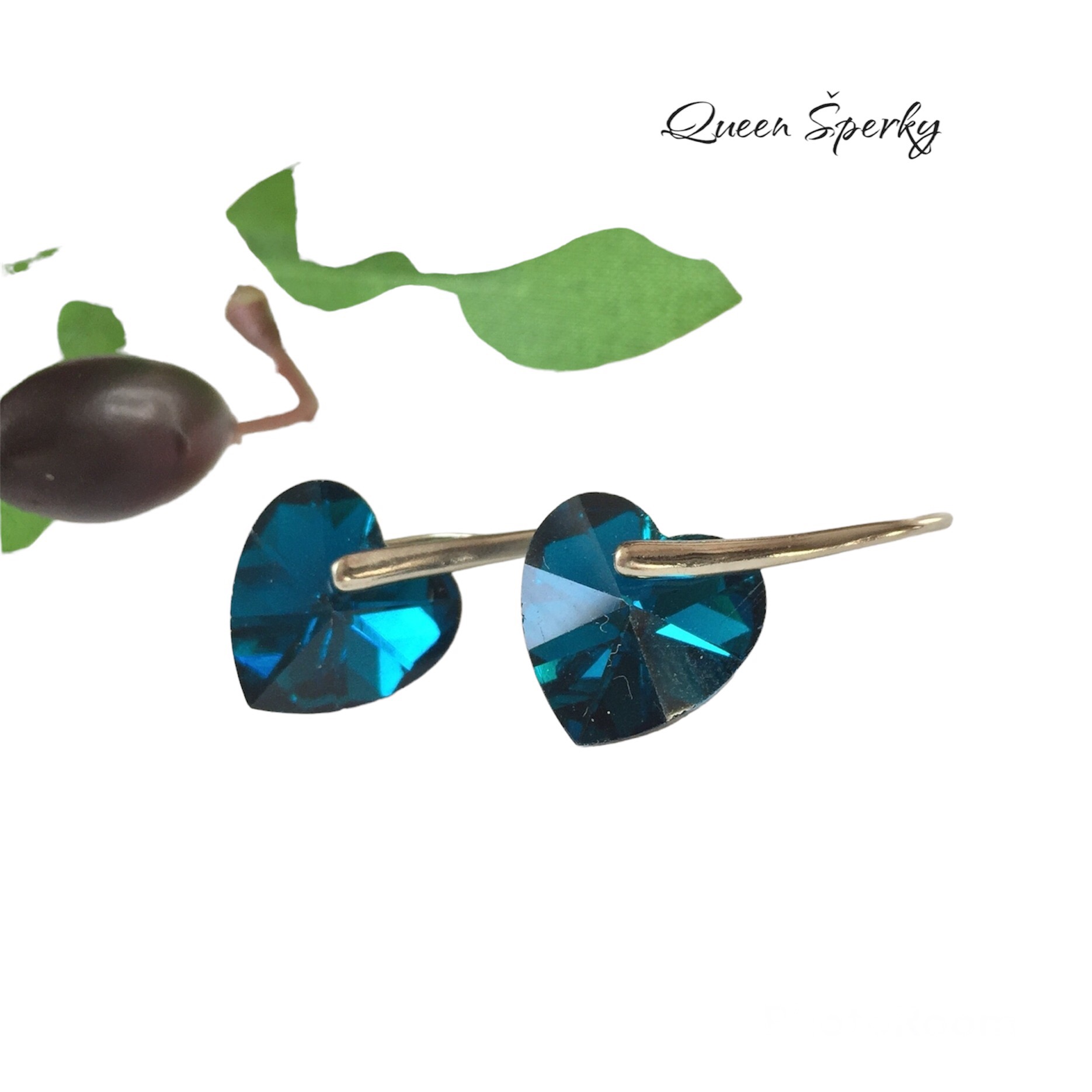 Náušnice sú zdobené kryštálmi v tvare srdiečka zelenej farbe. Rozmery srdiečka sú 1,2 x 1,2 cm. Výrobok je z postriebrenej ocele, neobsahuje nikel.